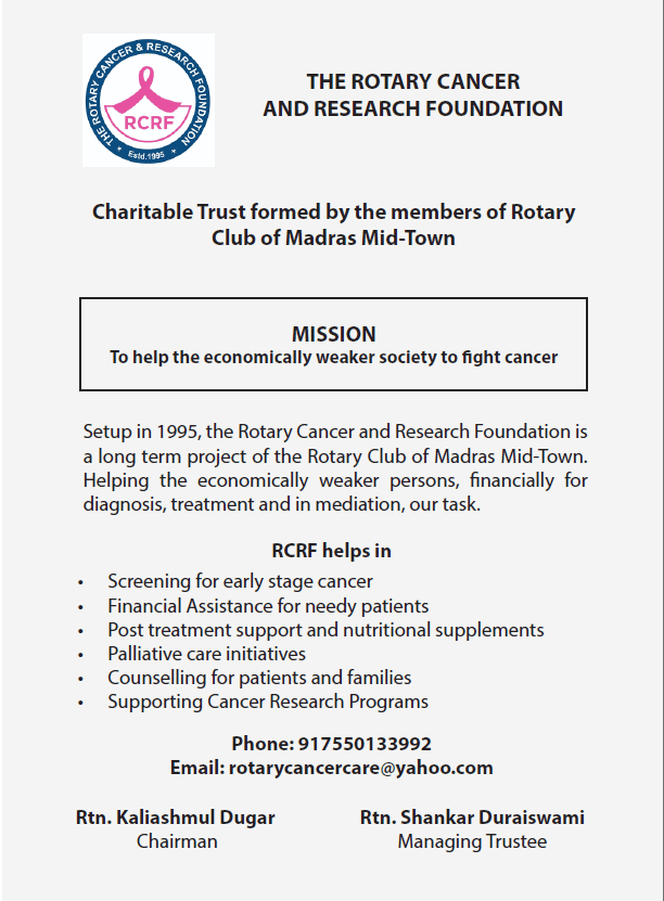 The Rotary Club of Madras Mid-Town (RCMM), chartered in 1972, is one of the distinguished clubs within Rotary International, which boasts over 34,000 clubs globally. With a membership of over 50 professionals and business leaders from diverse industries, RCMM is recognized as a premier club in Rotary District 3233.